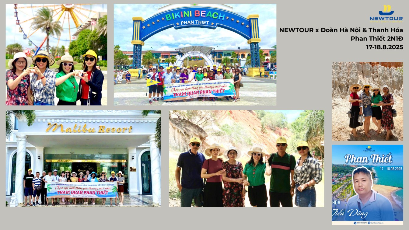 Từ ngày 17 - 18/8/2025, Đoàn khách đến từ Hà Nội và Thanh Hóa đã có chuyến hành trình 2 ngày 1 đêm đầy thú vị khám phá thành phố biển Phan Thiết cùng NEWTOUR. Hai ngày trải nghiệm đã mang đến cho tập thể những khoảnh khắc thư giãn tuyệt vời bên bờ biển xanh, những hoạt động vui chơi gắn kết và những kỷ niệm đáng nhớ, tạo nên một chuyến đi trọn vẹn niềm vui và ý nghĩa.