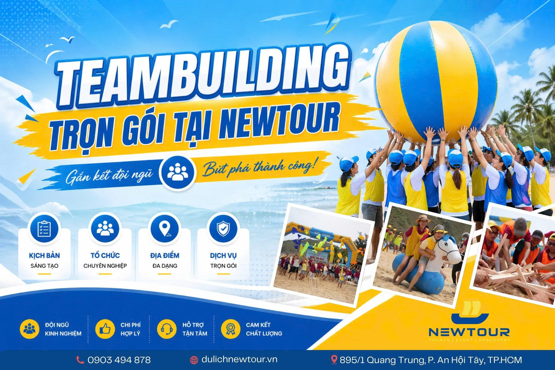 Với hơn 15 năm kinh nghiệm tổ chức hàng nghìn chương trình sự kiện – teambuilding – gala dinner, NEWTOUR mang đến giải pháp tổ chức trọn gói – sáng tạo – an toàn – linh hoạt, được thiết kế riêng theo nhu cầu từng doanh nghiệp.