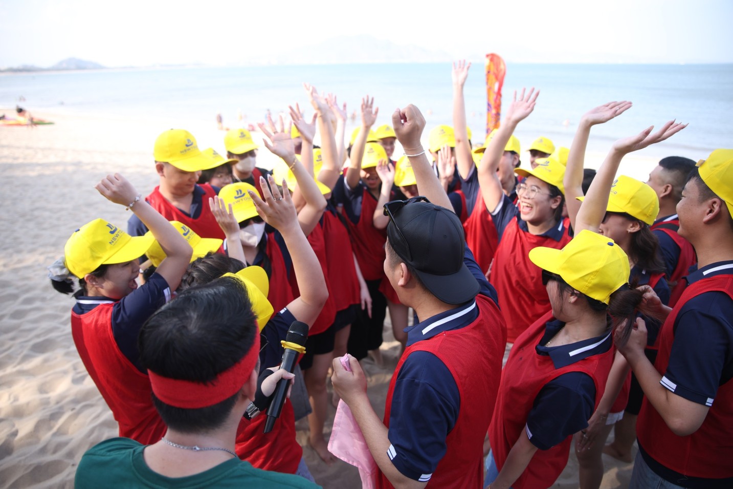 1. Khởi động - “Cùng nhau xuất phát” | Tạo năng lượng – hình thành tinh thần đồng đội | - Check-in với photobooth thương hiệu - Phát áo thun đồng phục - MC hoạt náo với trò chơi nhỏ: “Kết nối 5 giây” (bắt cặp, làm động tác theo hiệu lệnh) - Chia đội - đặt tên - sáng tạo cờ và slogan | 30-45 phút |